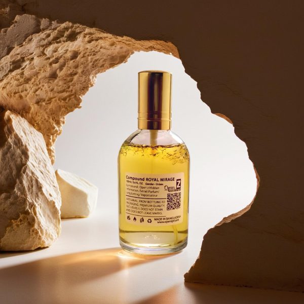 Compound ROYAL MIRAGE Perfume নিয়ে আসছে এক অনন্য ঘ্রাণের অভিজ্ঞতা। এর শুরুতে সতেজ সিট্রাস আর সবুজ নোট, মাঝখানে রোজ ও জ্যাসমিনের মায়াবী সৌরভ আর শেষে স্যান্ডালউড, অ্যাম্বার ও মস্কের গভীর সুবাস আপনাকে দিবে রাজকীয় অনুভূতি।